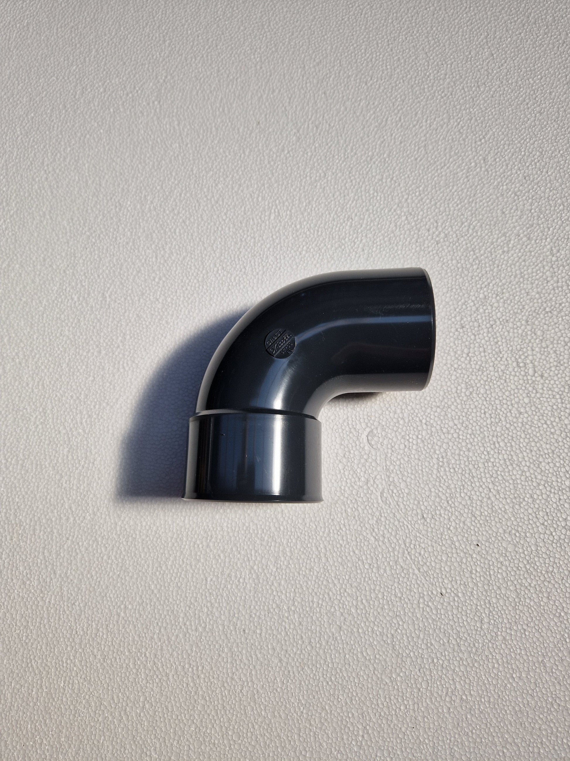 Bocht voor afvoerbuis diameter 80mm, kleur antracietgrijs. Net zoals de afvoerbuis 80mm zijn de bochten in Techtan-composiet (30 jaar garantie op de sterkte). De bochten zijn steeds aan 1 zijde gemoft; de andere zijde heeft een verval ('verjongd), waardoor de ongemofte buis erover past. Door dit systeem zijn geen losse moffen meer nodig. De bochten zijn verkrijgbaar in 87°, 67° en 45°.
