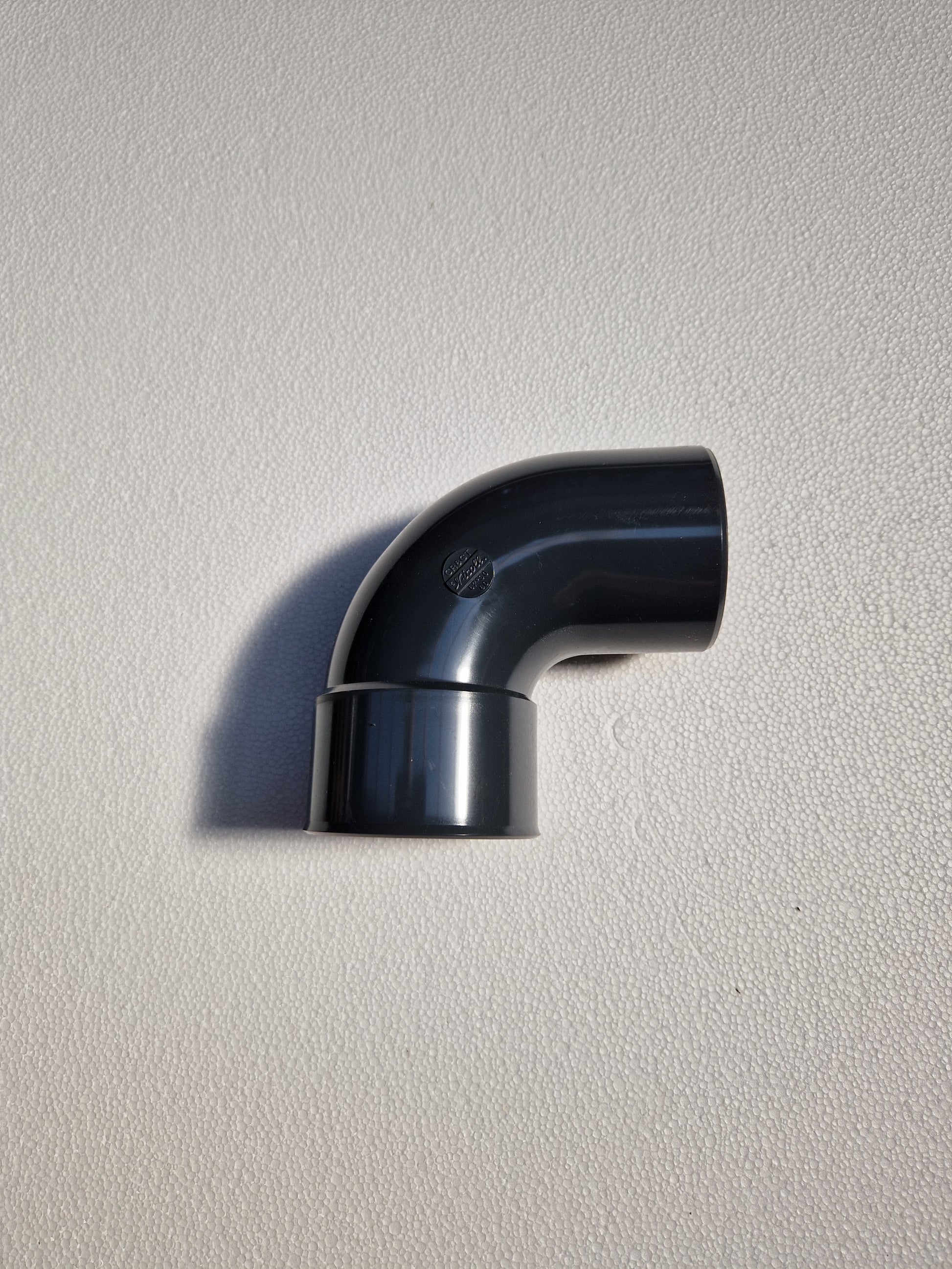 Bend for drain pipe diameter 80mm , color anthracite grey. Just like the 80mm drain pipe, the bends are made of Techtan composite (30-year strength guarantee). The bends are always muffed on 1 side; the other side is smooth. The bends are available in 87°, 67°, 45° and 20°.
