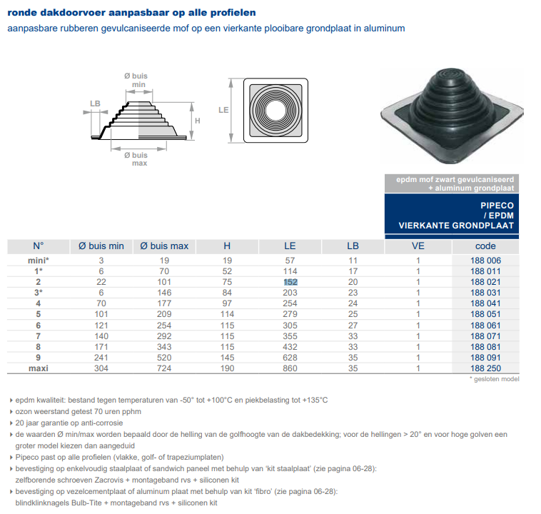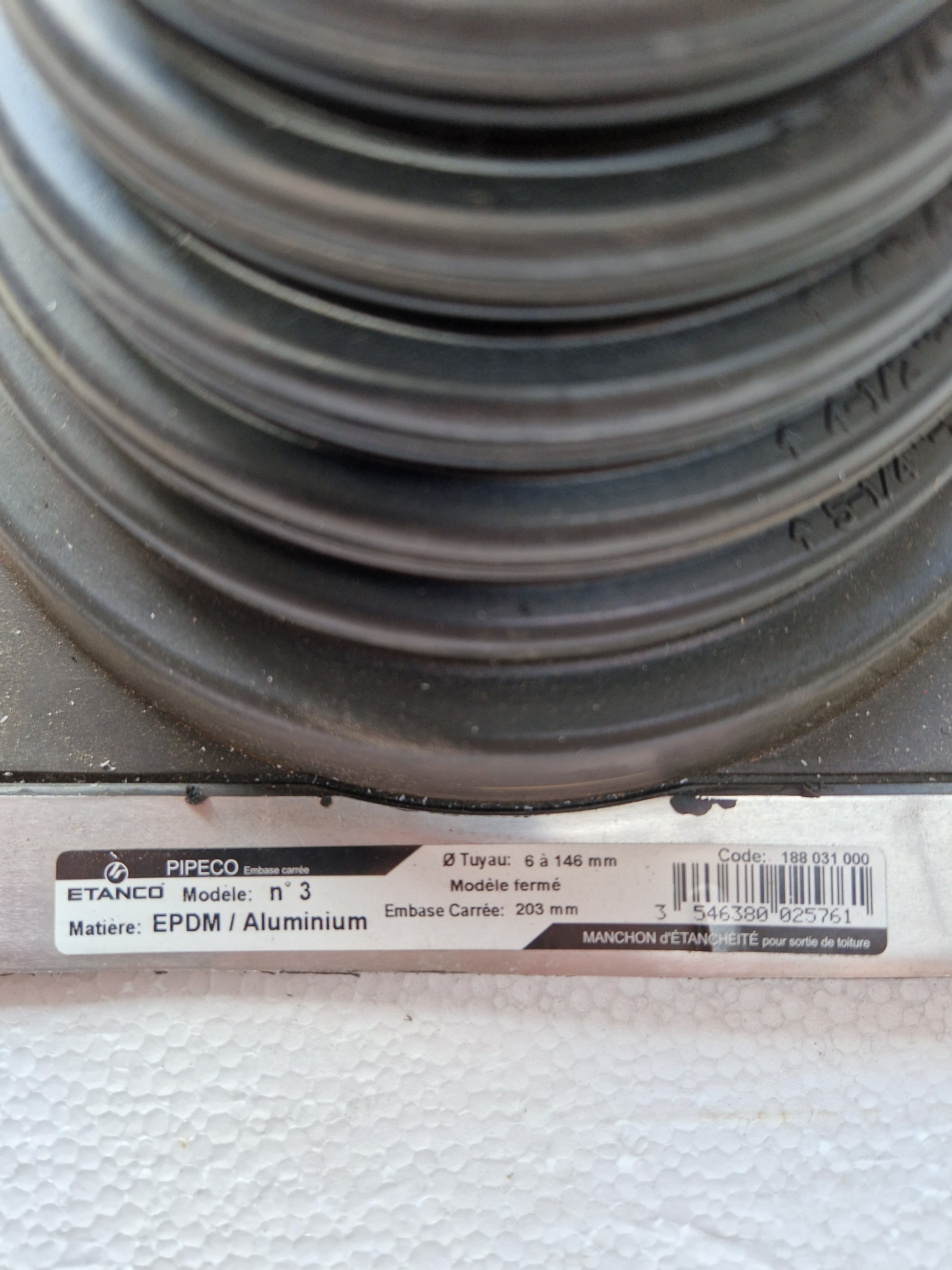 Watertight way to bring pipes (chimneys, HVAC, ventilation shafts,...) through the roof surface. Maximum tube temperature 150°C.
