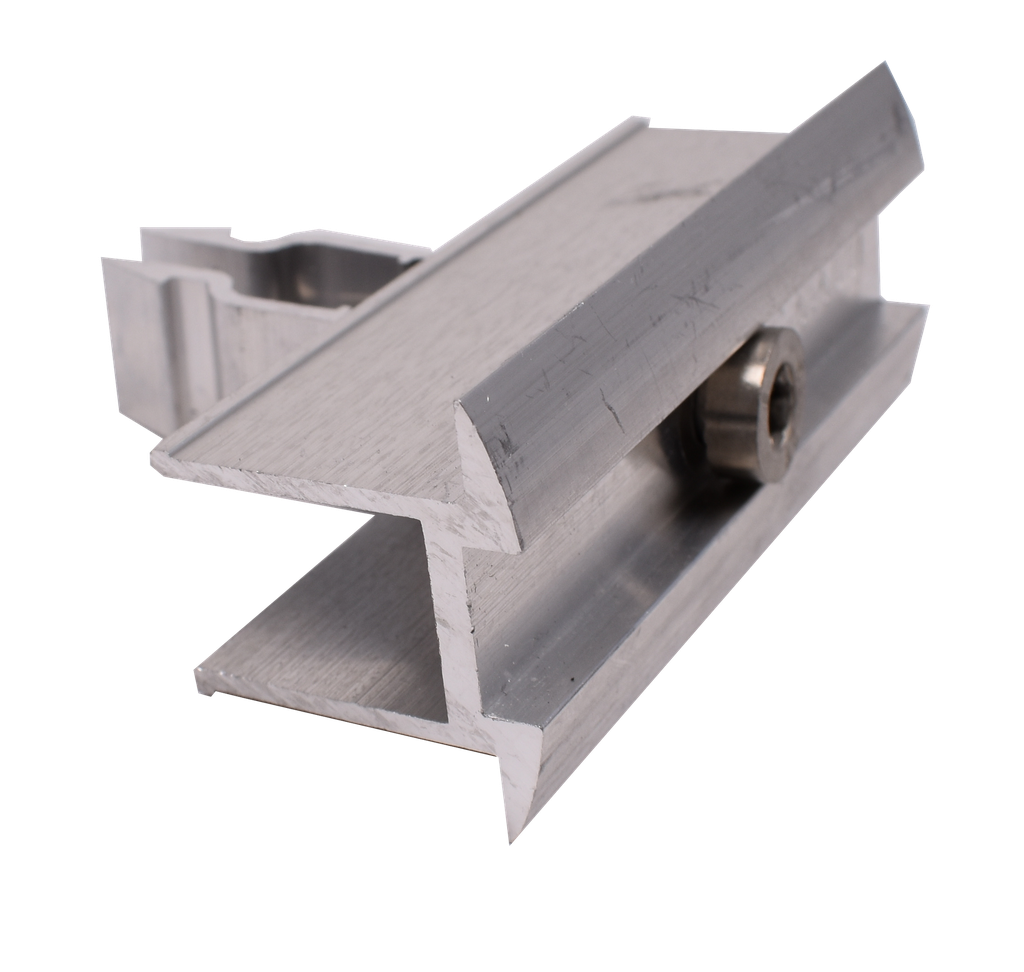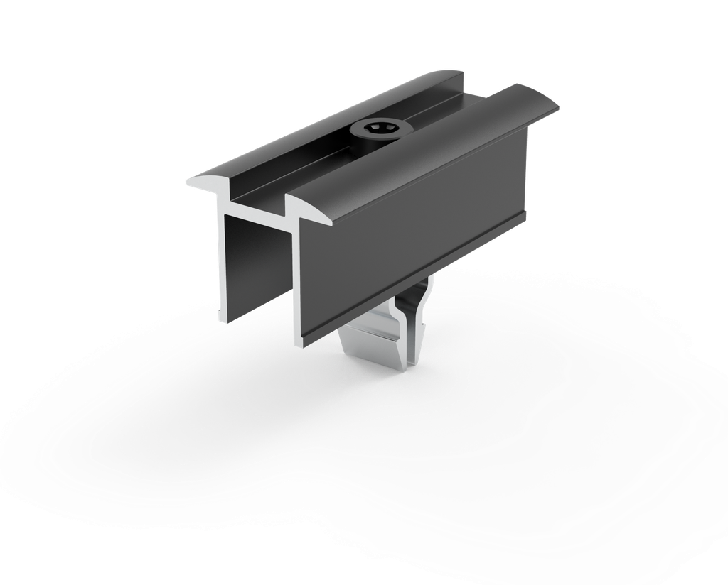 Klikmiddenklem voor ons Solarail bevestigingssysteem voor zonnepanelen op sandwichpanelen.