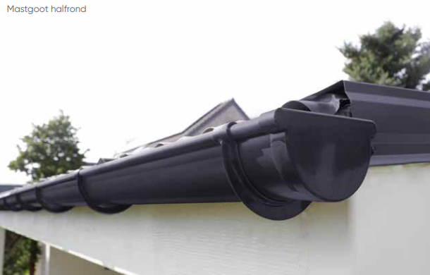 Gutter in anthracite (same color as the standard roof panels), standard length 4m. The gutter is made of the lightweight composite material 'Techtan', with a 30-year guarantee on the strength of the material. The LG25 gutter system is characterized by high strength, long life, light weight and very easy installation. You can simply click them into the brackets , the end pieces and any connecting pieces can be easily glued using the ' Griffon T88 ' instant adhesive.