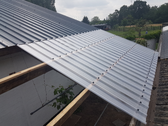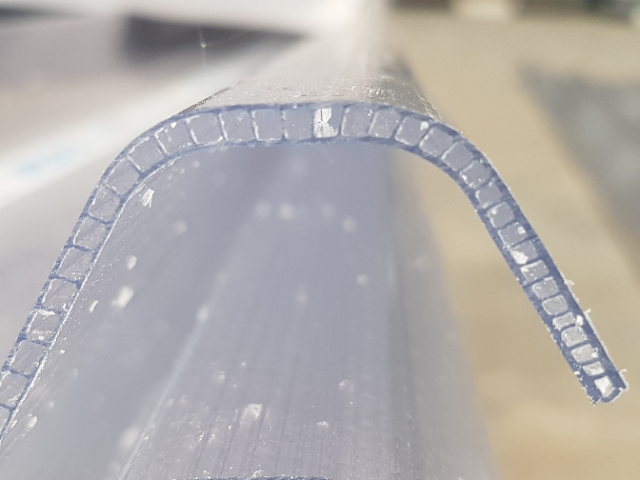 The 'Light' variant is a budget variant, which is equipped with 3mm thick ducts. The ends are always 'thermosealed' (sealed) as standard, if you saw the panels to size we strongly recommend closing them again with our sealant for skylights . These channels give the panel a much greater strength than a single-walled polycarbonate sheet, and the double-walled structure also has an anti-condensation effect. This type of panel is mainly combined with the normal profiled plates, with and without condensation screen. Sometimes it is also combined with the 10mm and 30mm insulated roof panels, in situations where the budget prevails over the insulation values. With a filling bar of 30mm you can then bring these skylights to the same height as the panels, and with the positive filling strips you can seal the openings under the waves.