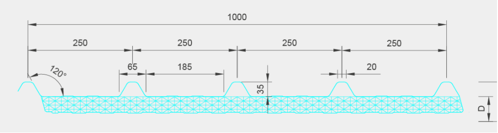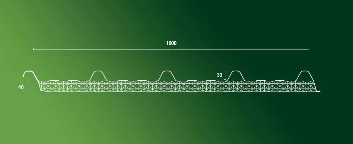 The 40mm insulation thickness is mainly used with the 60mm and 100mm insulation thickness. This type of skylight is popular because of its good thermal values: with a U-value of 1.0, this panel scores as high as modern double glazing!