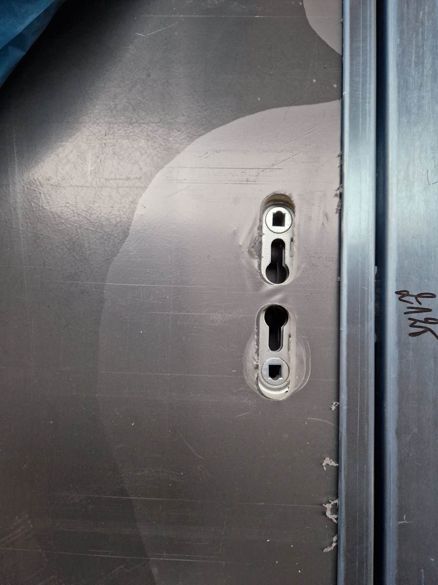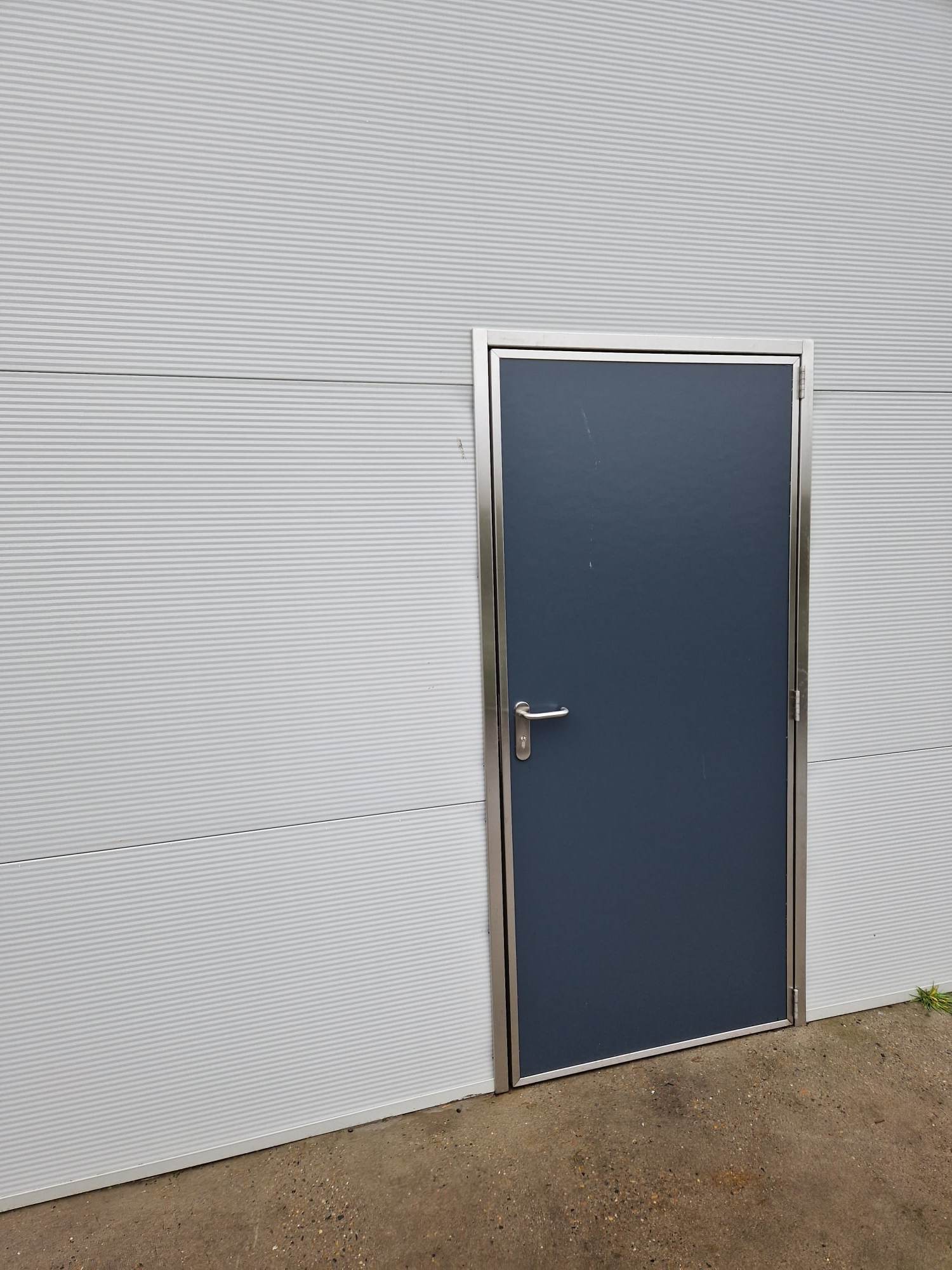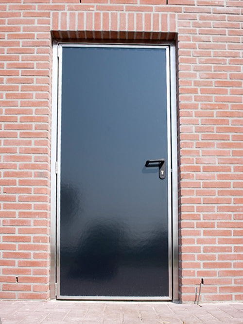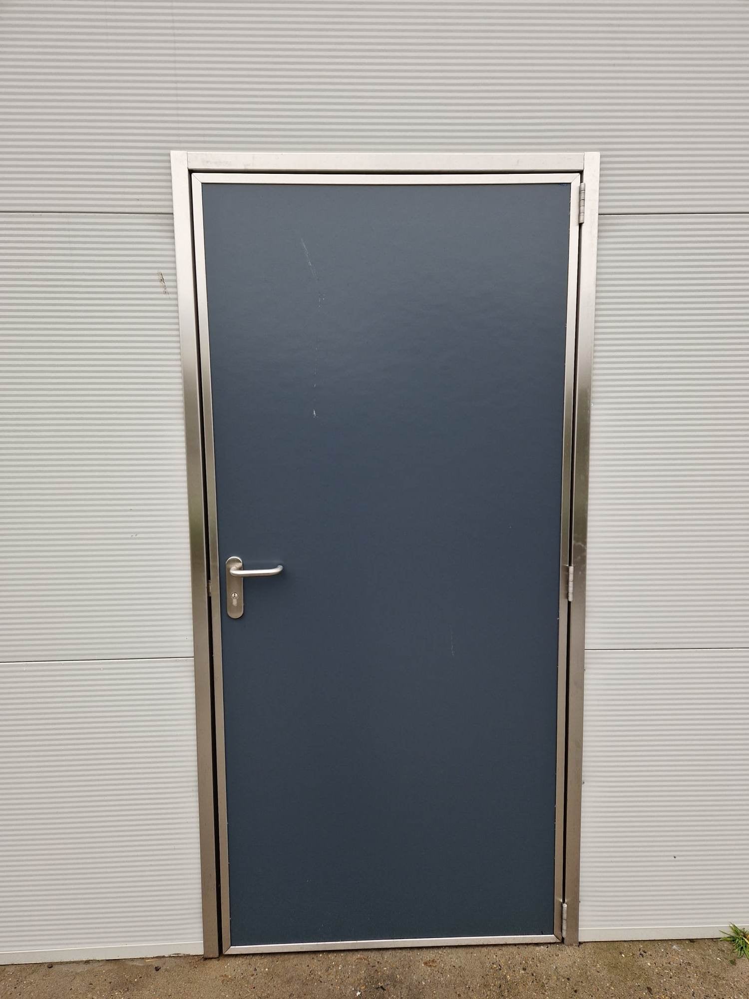 This door is constructed from a solid wall frame and door leaf frame made of high-quality stainless steel (SS). The door leaf is a sandwich panel with an insulating XPS core and a glass fiber reinforced polyester sheet (GRP) on both sides. These are standard anthracite gray on the outside, white on the inside. Thanks to the smart design, you can use this door both left and right, because it has no fixed top (so you can easily use it upside down).