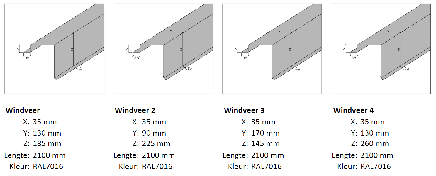 Bargeboards are mainly used to finish the left and right side of the roof (viewed from the gutter side). Standard color is RAL7016 anthracite grey, length is 2.1m (covering 2m, 10 cm overlap).